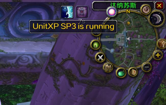 在启用UnitXP3 插件后,小地图会有一个像生命宝石图标一样的插件。